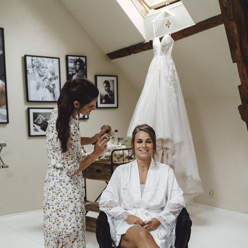 Wir arbeiten ausschließlich mit luxuriösen Beautyprodukten wie Armani, Chanel, Charlotte Tilbury, Dior, Fenty, Tom Ford, Laura Mercier, Westman Atelier und haben ebenfalls viele vegane und nachhaltige „Clean-Beauty“ Produkte in unserem Sortiment, wie Kora Organics, Tarte, RMS, Hänsel&Gretel und Honest. Diese Profiprodukte überstehen alle natürlichen Emotionen makellos und halten auch der längsten Hochzeitsparty stand. Da das "Brautstyling" zu unserem wahren Herzensprojekt geworden ist, hoffen wir sehr, dass wir Dein Interesse geweckt haben und Dich beim „Getting Ready“ begleiten dürfen.